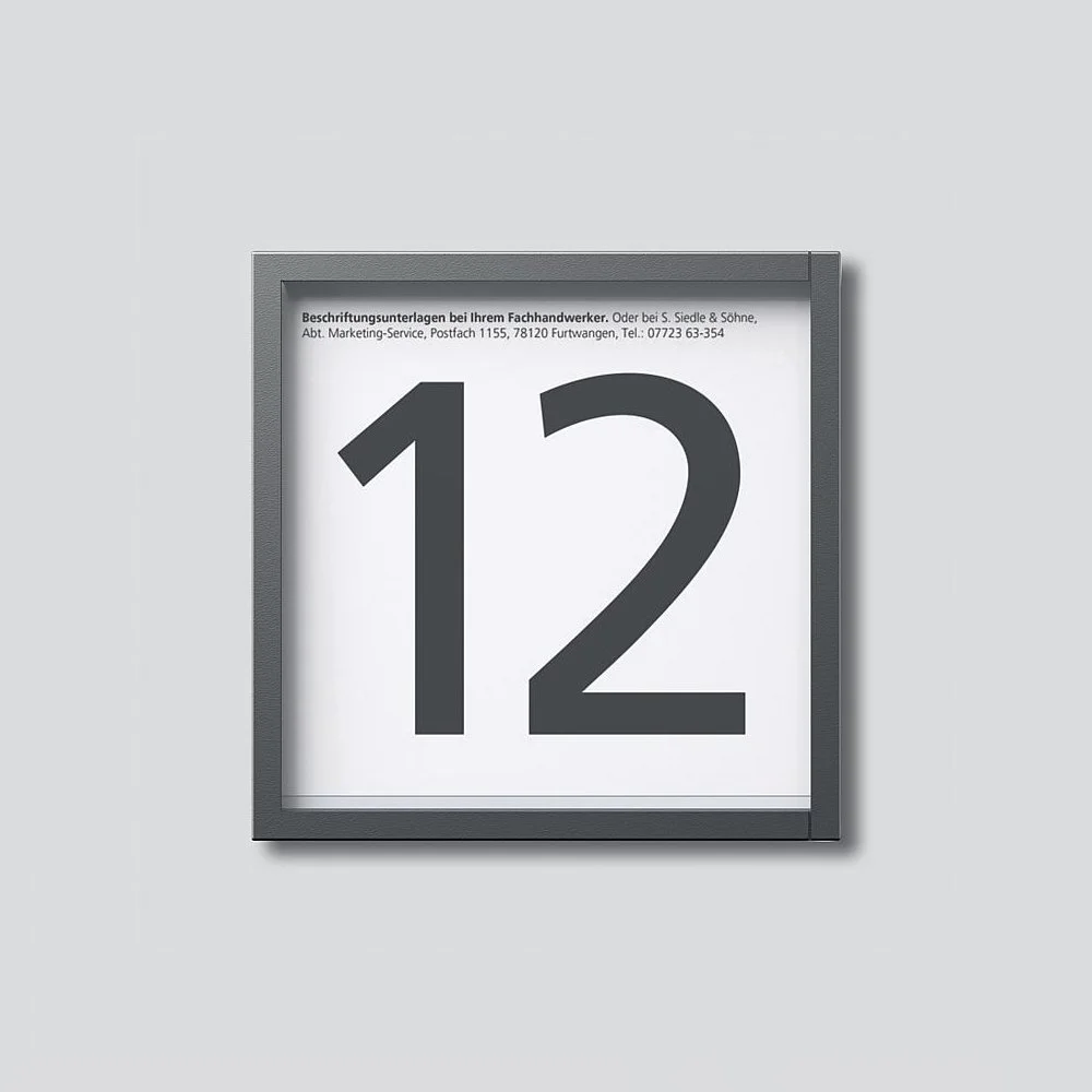 Lots of space and LED lighting for building number, name and opening times. Or for a list of call numbers, for example for the code lock.
